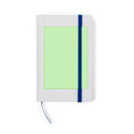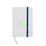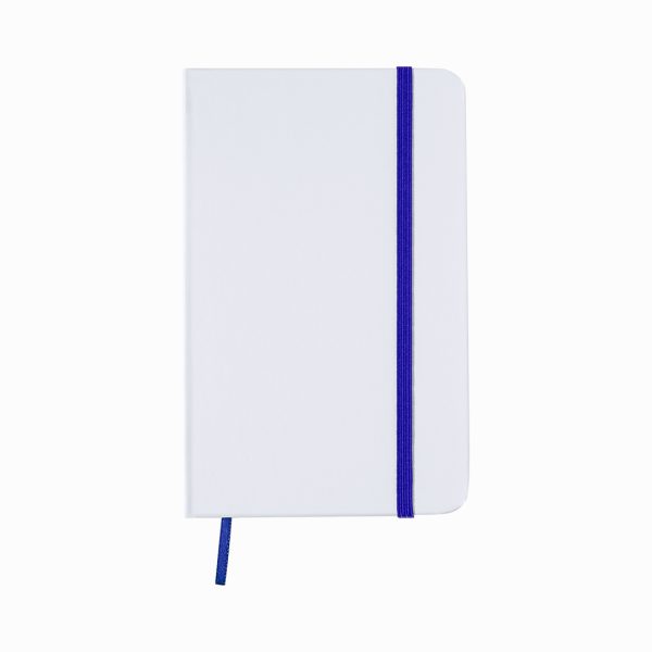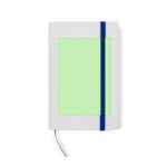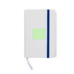 Carnet avec couverture élégant blanche au toucher lisse et en carton résistant. Spécialement conçu pour le marquage digital sur la couverture. 80 feuilles unies avec fermeture par élastique et signet assorti.