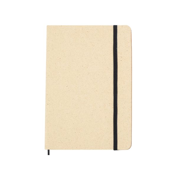 Bloc-notes A5 avec couvertures dures en herbe recyclée. 80 feuilles avec une disposition à une bande et une finition kraft, avec signet et bande élastique en noir. Logo en papier d’herbe sur les couvertures avant et arrière et présenté dans un sac individuel.Le papier d’herbe est une alternative parfaite qui garantit la durabilité pendant le processus de fabrication, réduisant l’impact environnemental en raison d’une croissance rapide et d’une faible demande de ressources pour le cultiver. En outre, 50 % de papier à base d’herbe est combiné à d’autres éléments écologiques, tels que le bois recyclé.
