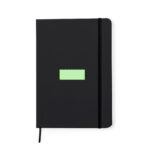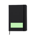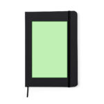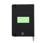 Bloc-notes avec couvertures rigides en similicuir recyclé de différentes couleurs. Intérieur avec 100 feuilles simples lignées. Comprend une fermeture élastique de la même couleur. Avec similicuir recyclé distinctif. Présenté dans un sac recyclé individuel.Le similicuir se distingue par sa résistance et son élasticité. Ce matériau recyclé et recyclable est une option durable qui récupère les fibres rejetées dans les processus de fabrication, minimisant ainsi les déchets de matériaux et contribuant à son tour à réduire l’impact environnemental, tout en conservant ses propriétés d’origine.