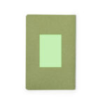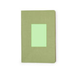 Carnet A5 de la ligne nature, avec des couvertures souples en carton recyclé résistant. 60 feuilles lisses de finition kraft et badge recyclé.