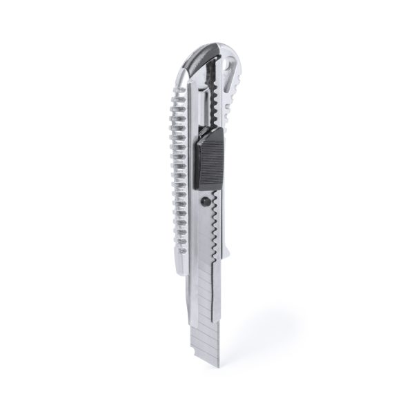 Cutter en mélange d´acier inoxydable et d´aluminium avec lame large et manche ergonomique. Embout amovible pour régler la longueur de la lame.