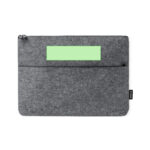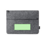 Housse pour ordinateur portable en feutre RPET. Poche principale rembourrée avec fermeture à glissière, pour ordinateurs portables jusqu’à 15 pouces, et poche avant pour les petits objets. Logo RPET en étiquette. Le feutre RPET est le fruit de la combinaison du processus de recyclage des matières plastiques et de la technique millénaire de fabrication du feutre, ce qui donne un matériau éco-tendance qui, en plus d’être d’origine recyclée, devient également recyclable.