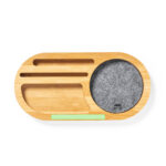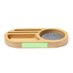 Organisateur de la ligne Nature en bambou en combinaison avec du feutre RPET. Avec fonction de support pour smartphone, plusieurs compartiments supplémentaires pour les objets et une grande zone de marquage. Avec feutre RPET distinctif et présenté dans une boîte design kraft individuelle.Le feutre RPET recyclé est le résultat de la combinaison du processus de recyclage des matières plastiques avec la technique ancienne de fabrication du feutre, résultant en un matériau éco-tendance qui, en plus d’être d’origine recyclée, devient également recyclable.
