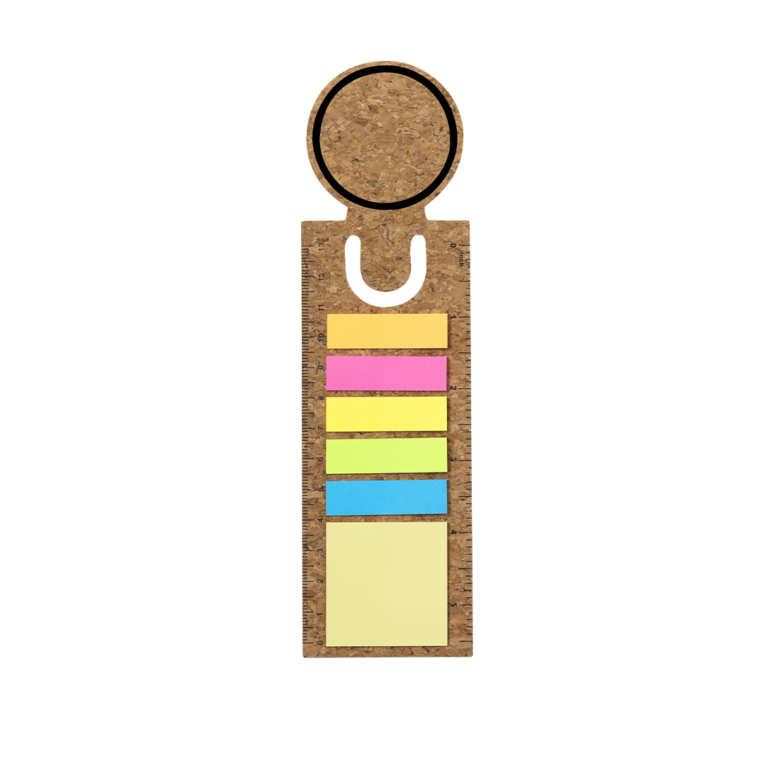 Règle marque-page en liège avec notes autocollantes. Inclut 90 notes autocollantes en plusieurs couleurs et tailles.Fabriquée avec des éléments végétaux pour promouvoir l’utilisation de matières premières naturelles et réduire les émissions polluantes.