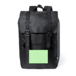 Sac à dos urbain de la ligne Nature, en polyester 300D RPET résistant sans PVC, fabriqué à partir de plastique recyclé, afin de favoriser la réutilisation des déchets plastiques et contribuer à la durabilité de la planète. Poche principale avec sangles et fermetures à boucle en métal  avec poche frontale zippée et tirette en métal. Intérieur avec poche rembourrée pour ordinateur portable jusquà 15 pouces et tablette jusquà 10 pouces. Bretelles rembourrées réglables avec signature RPET sur létiquette extérieure.