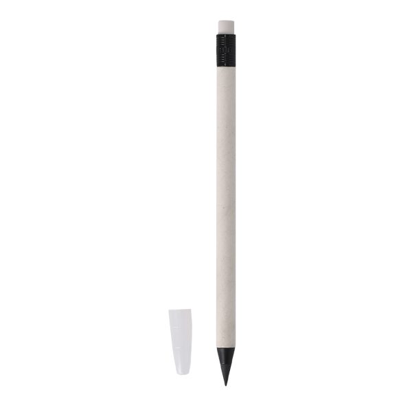 Crayon éternel fabriqué à partir de cartons de lait recyclés. Réutilisable et avec une écriture infinie. Comprend une gomme en haut du crayon. En blanc, avec des détails noirs. Avec le logo du carton de lait recyclé sur le corps.Les cartons de lait sont principalement composés de carton et d’aluminium. Lors du processus de recyclage, les différents matériaux d’emballage sont séparés pour être réutilisés et réaffectés, contribuant ainsi à la voie infinie de l’économie circulaire. Ce matériau est bien connu pour sa haute recyclabilité, ainsi que pour sa légèreté et sa résistance.