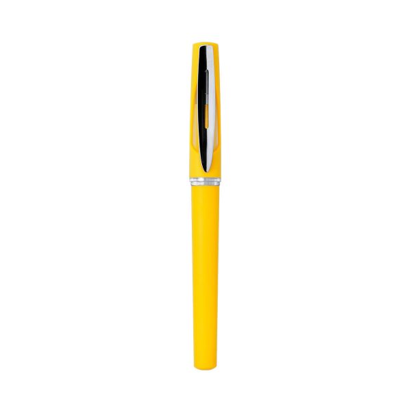 Rouleau de capuchon bicolor vif avec le corps doux de finition dans les couleurs et les accessoires gras avec détail lumineux et transparent. Encre de gel bleu.