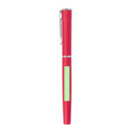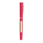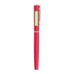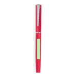 Roller à capuche en aluminium. De design bicolore joyeux, avec un corps de finition douce dans des couleurs vives et des accessoires de couleur argentée brillante. À l’encre en gel bleu et présenté individuellement dans un sac recyclé.