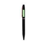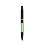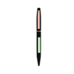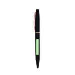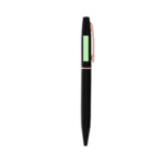 Ensemble bloc-notes et stylo fabriqués en PU recyclé et aluminium recyclé. En noir mat élégant avec des accessoires distingués en finition or rose.Carnet à couverture rigide en PU recyclé, avec fermeture magnétique et finitions en or rose. 80 pages couleur crème à rayures simples, avec marque-page assorti et porte-stylo à l’intérieur, ainsi que logo en PU recyclé sur la couverture arrière.L’ensemble est complété par un stylo bille en aluminium recyclé, noir mat avec accents en or rose et clip métallique. Mécanisme à rotation et encre bleue, avec logo en aluminium recyclé.Présentation dans un étui noir élégant.Le cuir PU recyclé se distingue par sa résistance et son élasticité. Ce matériau recyclable est une option durable qui récupère les fibres rejetées lors de la fabrication, minimisant ainsi le gaspillage de matière et réduisant l’impact environnemental, tout en préservant ses propriétés d’origine.L’aluminium recyclé est un matériau aux possibilités de recyclage presque infinies, qui conserve ses propriétés d’origine et consomme moins d’énergie dans le processus.Certification GRS (Global Recycled Standard), garantissant l’origine recyclée du matériau utilisé pour fabriquer le produit.