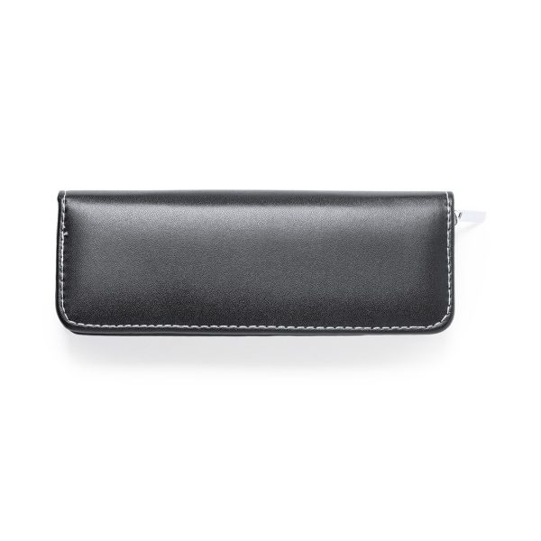 Ensemble premium de stylo et de rouleau. Fabriqué dans une combinaison élégante de similicuir dans des tons noirs et de métal chromé. Stylo à mécanisme rotatif à encre bleue et avec cartouche jumbo. Rouleau avec hotte et encre gel en bleu, charge jumbo. Présenté dans un étui en similicuir individuel avec fermeture à glissière et intérieur assorti avec compartiments individuels.
