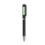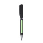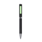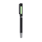 Set de stylo et de roller élégant. Stylo à capuche à mécanisme rotatif et roller, tous deux munis d’un clip métallique. À l’encre bleue, son corps présente une finition noire mate élégante et des détails chromés subtils. Présentés dans un étui kraft noir, avec un intérieur découpé au toucher de velours.