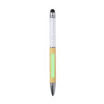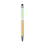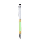 Élégant stylo pointeur en bambou. Structure en bambou avec une capsule transparente qui abrite des cristaux en forme de diamants. Ce stylet élégant dispose également d’un pointeur sur le dessus, clip et éléments décoratifs métalliques. Avec mécanisme rotatif et encre bleue. Des matériaux tels que le bambou encouragent l’utilisation de matières premières naturelles en réduisant les émissions polluantes. Il provient d’une plante très résistante et polyvalente, avec une croissance et une régénération rapides, étant une excellente alternative à l’utilisation du bois traditionnel.