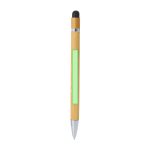 Stylo élégant en bambou avec mécanisme à bouton-poussoir. Corps en bambou et accessoire en argent. Avec un bouton-poussoir rétractable. À l’encre bleue.