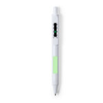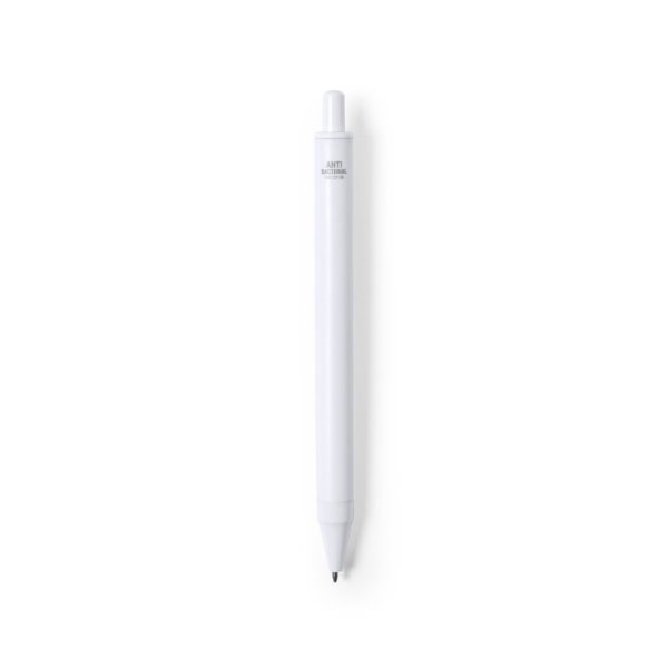 Stylo bouton poussoir antibactérien avec thermomètre intégré dans le clip. Conception monochrome, spécialement conçue pour le marquage en tampographie. À l’encre bleue et présenté dans le sac de conception individuel.Les produits avec des traitements antibactériens sont capables de réduire considérablement les charges bactériennes présentes sur les surfaces des matériaux, grâce à l’incorporation d’agents microbiens permanents statiques, avec une grande efficacité pour inhiber et prévenir la contamination bactérienne.Article conforme à l’ISO 22196, qui détermine l’activité antibactérienne dans les matières plastiques et les surfaces non poreuses, qui permet de connaître l’efficacité de l’inhibition microbienne que les additifs ont sur les objets traités par une évaluation quantitative.