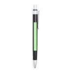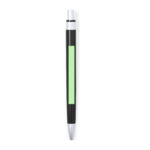 Stylo bicolore à bouton poussoir avec attributs gris argent et corps en couleurs vives. Clip original assorti. Encre bleue.
