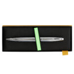 Stylo bille Calais de Cross. Avec mécanisme rétractable, design élégant bicolore et corps en métal finition lisse dans des couleurs variées. Présenté dans un élégant étui individuel noir, avec le logo de la marque et intérieur en velours doux. Encre noire.