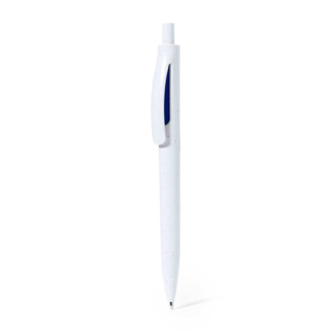 Stylo à bille à bouton-poussoir en ABS recyclé. Avec des accessoires aux couleurs vives et un corps au fini blanc uni doux. ABS recyclé distinctif sur le dessus du stylo. A l’encre bleue.