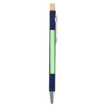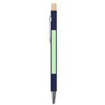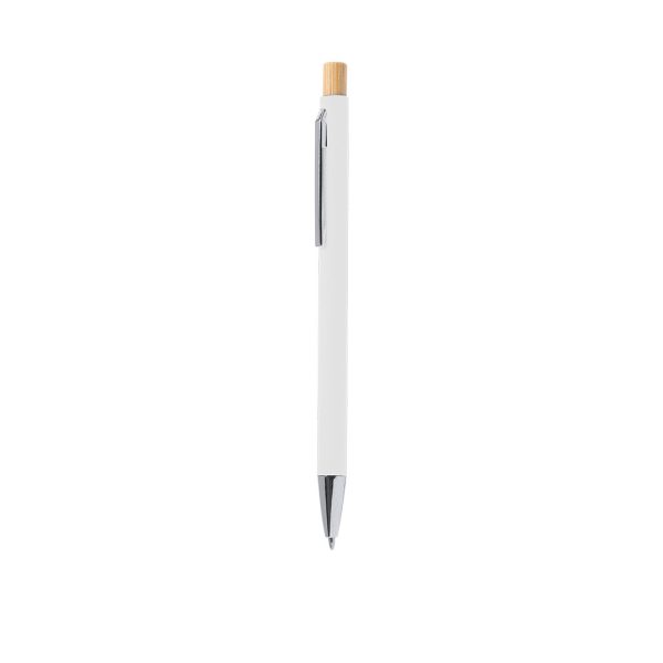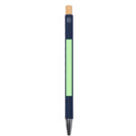 Stylo à bille à mécanisme à bouton fabriqué en aluminium recyclé. Bouton en bambou et corps en caoutchouc mat. Clip en métal et badge en aluminium recyclé sur le dessus du stylo, avec encre bleue.L’aluminium recyclé est un matériau avec des possibilités de recyclage presque infinies, sans perdre ses propriétés originales et en consommant moins d’énergie dans ce processus.Certificat GRS (Global Recycled Standard / Norme de Recyclage Mondial) garantissant l’origine recyclée du matériau utilisé pour fabriquer le produit.Des matériaux comme le bambou favorisent l’utilisation de matières premières naturelles, réduisant les émissions polluantes. De plus, le bambou provient d’une plante très résistante et polyvalente, à croissance rapide, constituant une excellente alternative à l’utilisation de bois traditionnel.Recharge Jumbo