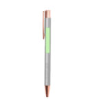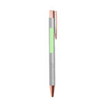 Excellent stylo à bille en aluminium avec mécanisme poussoir. Corps en aluminium robuste finition mate avec des éléments décoratifs d’élégante finition cuivre, avec la canne dans une large gamme de couleurs distinctives. Clip métallique, avec bouton-poussoir rétractable à encre bleue et chargement jumbo. Présenté dans un sac individuel recyclé.