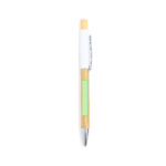 Stylo à bille élégant en bambou. Corps en aluminium résistant de finition en caoutchouc et poignée en bambou, avec la canne dans une large gamme de couleurs distinctives. Clip métallique, avec mécanisme de bouton-poussoir et encre bleue. Présenté en sachet individuel recyclé.Des matériaux comme le bambou favorisent l’utilisation de matières premières naturelles et réduisent les émissions polluantes. Il est issu d’une plante très résistante et polyvalente, avec une croissance et une régénération rapides, ce qui est une excellente alternative à l’utilisation du bois traditionnel.