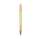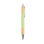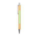 Stylo à bille avec poussoir, gamme éco-friendly, avec corps en bambou, clip en métal et bouton poussoir chromé. Encre bleue.
