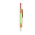 Stylo à bille 4 en 1 avec mécanisme à bouton-poussoir rétractable. Combinaison d’un corps en liège naturel et d’accessoires en canne de blé et ABS, pour favoriser l’utilisation et le recyclage des matières premières, réduisant ainsi les émissions polluantes. 4 cartouches d’encre bleue, rouge, noire et verte.Fabriqué avec des éléments végétaux pour favoriser l’utilisation de matières premières naturelles et réduire les émissions polluantes.