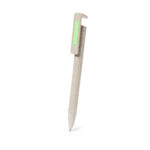 Stylo élégant et pratique en canne de blé et ABS. Mécanisme à bouton-poussoir, avec support de clip intégré pour appareil mobile. À l’encre bleue et poinçonné Wheat Straw en haut du stylo.La canne à blé favorise l’utilisation de matières premières naturelles, réduisant ainsi les émissions polluantes.