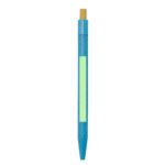 Stylo fabriqué avec de la fibre de paille de blé. Avec un corps et un clip assortis, de mécanisme à bouton fabriqué en bambou et encre bleue. Avec logo distinctif de paille de blé marqué sur la tige. La paille de blé favorise l’utilisation de matières premières naturelles, réduisant ainsi les émissions polluantes.