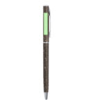 Stylo à bille avec corps en fibre de café. Clip métallique et accessoires chromés. Mécanisme rotatif et encre bleue. Avec une fibre de café Logo et disponible en couleur naturelle.La fibre de café est une solution circulaire obtenue à partir de l’utilisation des déchets produits dans la production du café. Une alternative durable qui favorise la réduction de l’utilisation des plastiques, en économisant de l’énergie dans leur processus de fabrication et en contribuant à la protection de l’environnement.