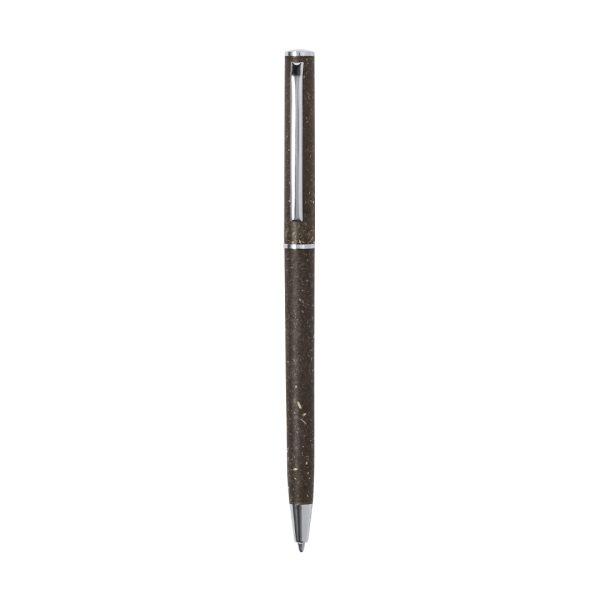 Stylo à bille avec corps en fibre de café. Clip métallique et accessoires chromés. Mécanisme rotatif et encre bleue. Avec une fibre de café Logo et disponible en couleur naturelle.La fibre de café est une solution circulaire obtenue à partir de l’utilisation des déchets produits dans la production du café. Une alternative durable qui favorise la réduction de l’utilisation des plastiques, en économisant de l’énergie dans leur processus de fabrication et en contribuant à la protection de l’environnement.
