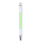 Stylo à bouton-poussoir avec corps en aluminium, finition solide en blanc et clip dans une variété de couleurs métalliques avec une finition brillante. Clip avec large surface d´impression. Spécialement conçu pour le marquage laser et avec un revêtement extérieur spécial pour votre publicité, il est parfaitement enregistré, en harmonie avec la couleur du clip. Encre bleue