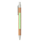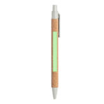 Stylo de ligne naturelle avec le mécanisme de bouton-poussoir. Combinaison de corps en liège naturel et d’accessoires en canne à blé et ABS, afin de promouvoir l’utilisation et le recyclage des matières premières, réduisant ainsi les émissions polluantes. Disponible dans une large gamme de couleurs, à l’encre bleue. Insigne de paille de blé sur le dessus du stylo.