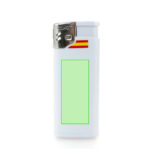 Mini briquet à gaz avec mécanisme électrique et design espagnol, dans une élégante couleur blanche unie. Avec sécurité enfant, rechargeable et régulateur de flamme. Servi en boîtes de 50 unités.