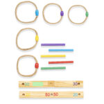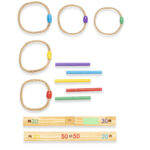 Jeu de tir en bois. Il consiste à filtrer les cerceaux à la base avec des bâtons de la même couleur (chaque couleur a un score différent). Compact et confortable à monter, il comprend 12 pièces. Avec des instructions en espagnol et en anglais. Présenté individuellement dans une boîte de conception kraft.