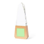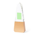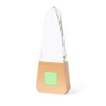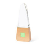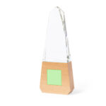 Plaque commémorative en verre épais et résistant, avec une base en bois naturel. Présenté dans un étui de protection en kraft, avec fermeture aimantée et mousse intérieure.
