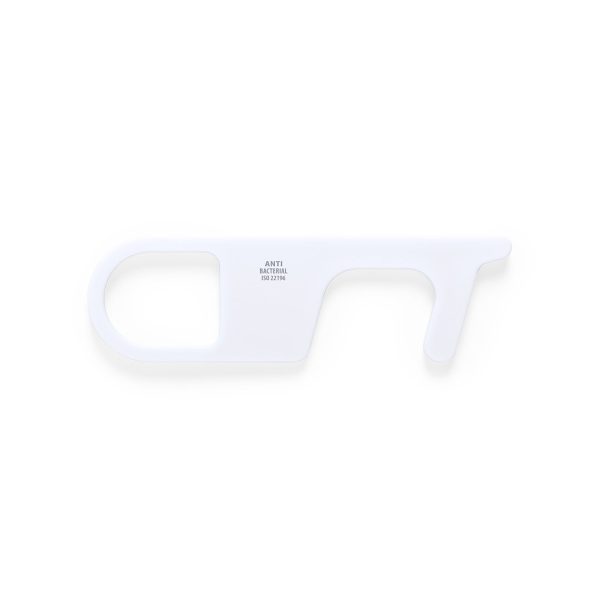 Porte-clés de sécurité hygiénique, antibactérien et anti-contact, en ABS résistant avec une finition solide. Spécialement conçu pour éviter de toucher les surfaces à usage public avec vos mains (poignées de porte, interrupteurs, robinets à usage public, distributeurs automatiques de billets …). Avec découpe confortable pour le doigt et présenté dans un sac individuel. Recommandé pour la tampographie.Les produits avec des traitements antibactériens sont capables de réduire considérablement les niveaux bactériens présents sur les surfaces des matériaux, grâce à l’ajout d’agents microbiens statiques permanents, avec une grande efficacité pour inhiber et prévenir la contamination bactérienne.Article selon la norme ISO 22196, qui détermine l’activité antibactérienne des matières plastiques et des surfaces non poreuses.