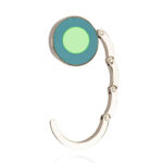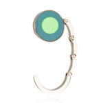 Porte sac pliable en métal avec pastille en similicuir de couleur vive. Présenté en étui individuel avec intérieur mousse.