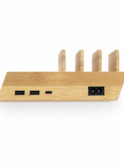 Station de charge sans fil de la ligne Nature, multi-appareils et charge 10W, capable de charger simultanément jusqu’à 4 appareils. Fait de bambou.Comprend 2 sorties USB et 1 sortie Type-C compatible avec les appareils équipés de la technologie de charge sans fil. Câble de connexion de 150 cm avec prise européenne, avec une grande surface de marquage et présenté dans une jolie boîte d’éco design. Manuel d’instructions disponible en espagnol et en anglais. Conformément aux exigences de sécurité :Système de protection contre la surchauffe.Système de protection contre les surcharges.Système de verrouillage pour éviter les courts-circuits. Personnalisations possibles :GRAVURE LASER 2