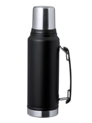 Thermos en acier inox de 1L de capacité. Combinaison de couleur noire avec finition élégante en acier poli, fermeture à vis avec bouchon en forme de verre 200ml et poignée sur le côté pour un transport facile. Présenté dans une boîte de conception kraft. Personnalisations possibles :SÉRIGRAPHIE CIRCULAIRE F