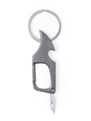 Porte-clés décapsuleur métallique pratique. Avec anneau pour porte-clés et mousqueton pour un accrochage rapide. Avec ouvre-bouteille à l’une de ses extrémités, il incorpore un petit couteau en acier inox à l’extrémité opposée, idéal pour ouvrir des lettres, des colis, etc. En noir métallisé élégant et présenté dans un sac en papier recyclé. Personnalisations possibles :TAMPOGRAPHIE D