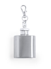 Porte-clés pratique en acier inox de 30 ml. Bouchon avec fermeture de sécurité à vis et mousqueton rotatif. Présenté dans une boîte de conception kraft. Personnalisations possibles :GRAVURE LASER 1