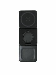 Chargeur multimobile sans fil complet de 15W avec support pliable 3 en 1. Conçue pour la recharge simultanée de smartphone/casque et montre connectée : une station de recharge tout-en-un. Comprend un ensemble de câbles de type C et un adaptateur USB, adapté au transfert de données. Personnalisations possibles :TAMPOGRAPHIE E
