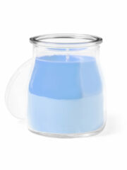 Bougie parfumée en pot de verre, disponible en senteurs assorties : blanc vanille baies rouges bleu océan et vert mousse. Avec label Made In Europe. Personnalisations possibles :GRAVURE LASER 1