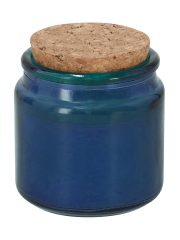 Bougie parfumée à la vanille dans un bocal en verre transparent, circulaire et avec un couvercle en liège. Personnalisations possibles :TAMPOGRAPHIE E