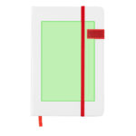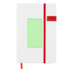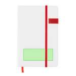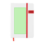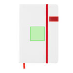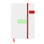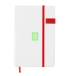 Élégant carnet de finition blanc avec mémoire USB de 16 Go intégrée dans la housse avant. Bande élastique, clé USB et marquage de page correspondant, dans une variété de couleurs. Inclut 100 feuilles avec un arrangement de rayure.