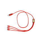 Câble de charge en aluminium recyclé. Avec connexion d’entrée dual Type C/USB et sorties Type C, Lightning et Micro USB. Inclut un label d’aluminium recyclé.L’aluminium recyclé est un matériau avec des possibilités de recyclage presque infinies, sans perdre ses propriétés d’origine et consommant moins d’énergie dans ce processus.Certification GRS (Global Recycled Standard / Standard de Recyclage Mondial), qui garantit l’origine recyclée du matériau utilisé pour fabriquer le produit.Connexion Micro USB, Type C et Lightning 5V CC 2.4A.