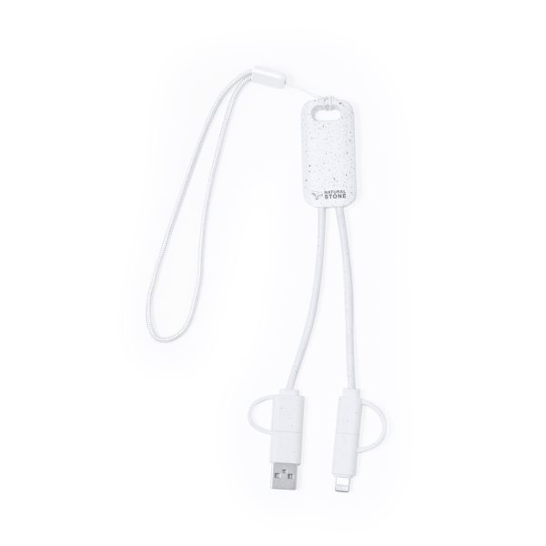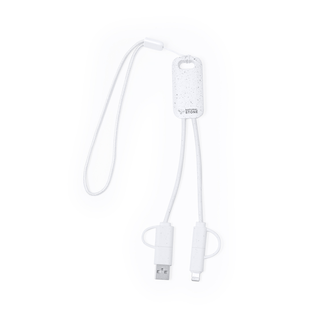 Câble chargeur fabriqué à partir d’extraits de pierre naturelle en combinaison avec résistant ABS. Avec des connexions d’entrée Type C/USB et des sorties Type C, Lightning et Micro USB. 5V DC 2.4A. Présenté dans une boîte individuelle de conception kraft.Fabriqué à partir d’extraits de pierre naturelle, aidant à réduire l’utilisation de plastique, en plus de fournir une finition souple et résistante.
