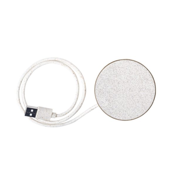Chargeur sans fil circulaire original de la gamme éco-friendly. Boîtier en carton recyclé, contribuant à la conservation des forêts et réduisant considérablement l’empreinte carbone, avec surface de charge et câble en canne de blé. Compartiment intérieur pour ranger le câble et l’emporter partout. Indicateur d’état de charge par LED, compatible avec les smartphones dotés de la technologie de charge sans fil et présenté dans une boîte attrayante éco-conçue, avec un manuel d’instructions en anglais et en espagnol.