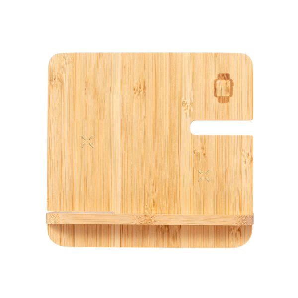 Multicharge sans fil 15W complet avec prise en charge des gadgets, fabriqué en bambou. Conçu pour le chargement simultané du smartphone, des écouteurs et des smartwatch : une station de charge tout-en-un, polyvalente et avec différents supports. Présenté dans une boîte de conception kraft. Le mode d’emploi est disponible en anglais et espagnol.Des matériaux comme le bambou favorisent l’utilisation de matières premières naturelles et réduisent les émissions polluantes. Il est issu d’une plante très résistante et polyvalente, avec une croissance et une régénération rapides, ce qui est une excellente alternative à l’utilisation du bois traditionnel.Fabriqué conformément aux normes RoHS et aux exigences de sécurité suivantes :Protection contre la surchauffe.Système de protection contre la surcharge.Système de verrouillage pour éviter les courts-circuits.
