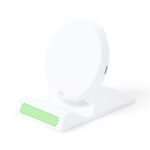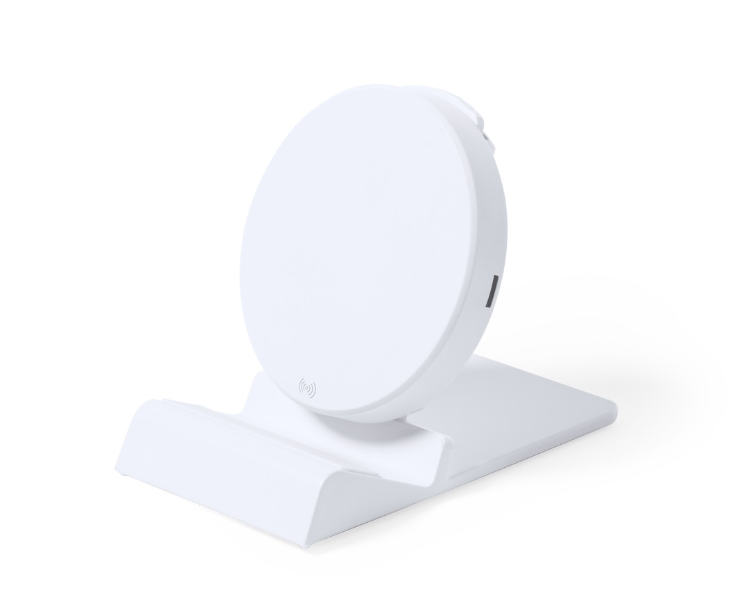 Chargeur sans fil à charge rapide de 15 W. Dans une finition blanche élégante, avec base de charge réglable en hauteur et fonction du support de smartphone. Compatible avec les appareils équipés de la technologie de charge sans fil. Câble de charge de type C inclus, avec une grande surface de marquage et présenté dans une boîte de conception attrayante. Manuel d’instructions disponible en espagnol et en anglais. Conformément aux exigences de sécurité :Système de protection contre la surchauffe.Système de protection contre les surcharges.Système de verrouillage pour éviter les courts-circuits.